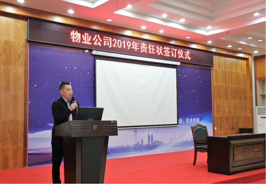 儀式簽訂后,物業(yè)公司總經(jīng)理張林就2019年目標責任狀簽訂儀式做了總結(jié)性講話。張總表示,2019年責任狀的簽訂為公司年度目標任務的達成起到了積極的作用,同時也給在場的各個責任人明確了目標。2019年的責任狀與往年相比,考核指標更加細致,更有依據(jù)和說服力。同時強調(diào),此次目標責任狀的簽訂儀式,公司將嚴格各項目標責任的考核,堅決不走形式。最后,勉勵大家穩(wěn)抓穩(wěn)打,同時要求,在場的所有管理層,在2019年主動謀劃,主動有為,克服一切困難,完成公司的經(jīng)營管理目標。