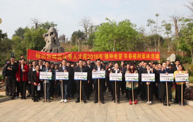 2016年4月26日上午,由集團(tuán)培訓(xùn)中心組織的裕達(dá)新精英優(yōu)秀人才庫(kù)2016年“播種希望”早春植樹(shù)動(dòng)員活動(dòng)圓滿結(jié)束。參加本次活動(dòng)人員為裕達(dá)新精英優(yōu)秀人才成員均來(lái)自集團(tuán)各中心、各項(xiàng)目、各子(分)公司中層以上管理人員及在職的各體系大學(xué)本科生的員工,共計(jì)100人。