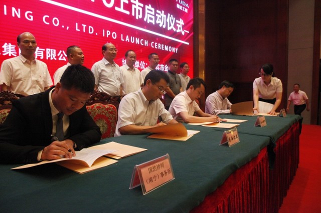 9月7日11時(shí),由廣西裕達(dá)集團(tuán)有限公司主辦、來(lái)賓市金融辦協(xié)辦的“廣西裕達(dá)工程有限公司上市啟動(dòng)儀式”在來(lái)賓飯店隆重舉行。啟動(dòng)儀式上,廣西裕達(dá)集團(tuán)下屬子公司廣西裕達(dá)工程有限公司與國(guó)海證券、北京天圓全會(huì)計(jì)師事務(wù)所、國(guó)浩律師(南寧)事務(wù)所IPO上市輔導(dǎo)協(xié)議正式簽署生效,意味著廣西裕達(dá)集團(tuán)從房地產(chǎn)開(kāi)發(fā)向偉大的金融公司轉(zhuǎn)型邁出了堅(jiān)實(shí)的一步。