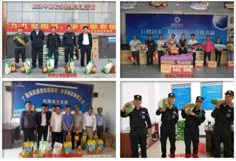 愛在重陽度金秋,樂享幸福桑榆景。在一年一度的九九重陽節(jié)到來之際,為肯定全集團(tuán)年長員工的辛勤付出和貢獻(xiàn),度過一個(gè)溫馨、快樂的重陽佳節(jié),集團(tuán)公司、武宣裕達(dá)房地產(chǎn)開發(fā)有限公司、廣西盛銘混凝土有限公司、廣西裕達(dá)集團(tuán)物業(yè)服務(wù)有限公司等各子(分)公司開展了形式多樣的慰問活動(dòng),為年長員工送上了滿滿的節(jié)日祝福。