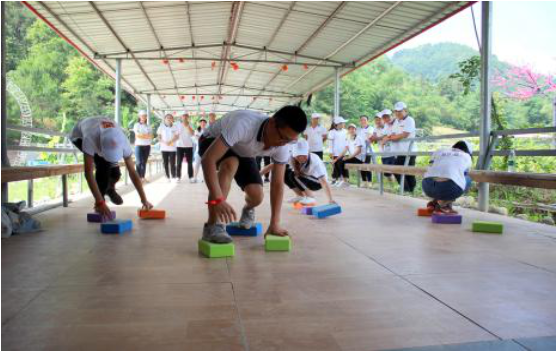 第三個游戲移行換位,主要培養(yǎng)了團結一致、克服困難、協(xié)調(diào)能力增進隊員間相互信任和理解的團隊精神。
