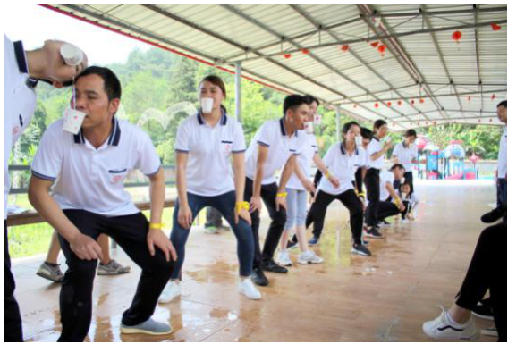 第四個游戲是銜紙杯傳水,考驗了隊員配合、協(xié)作能力、增進親近感,在歡笑中本次活動圓滿結束了。