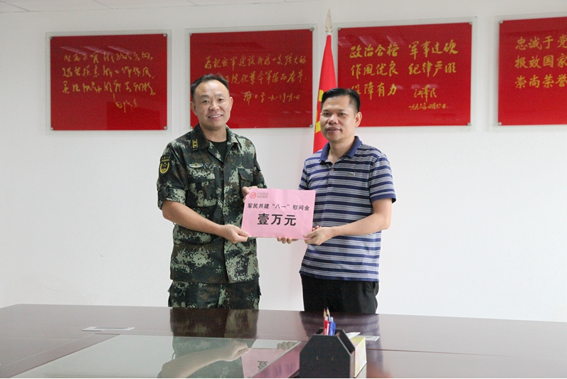 在“八一”建軍節(jié)來臨之際,為增進(jìn)與部隊(duì)官兵的情感交流,共話軍民魚水情誼,7月30日,由集團(tuán)副總裁梁鋒、總裁助理?xiàng)钯O敏、楊碩、行政副總監(jiān)羅桂平、行政部經(jīng)理覃婷婷等一行領(lǐng)導(dǎo)組成慰問團(tuán),先后到武警來賓支隊(duì)、廣西陸軍預(yù)備役兵師第一團(tuán)、來賓市消防支隊(duì)、中國人民解放軍廣西來賓軍分區(qū)開展八一慰問活動,向部隊(duì)官兵表達(dá)了崇高的敬意并送去節(jié)日祝福。