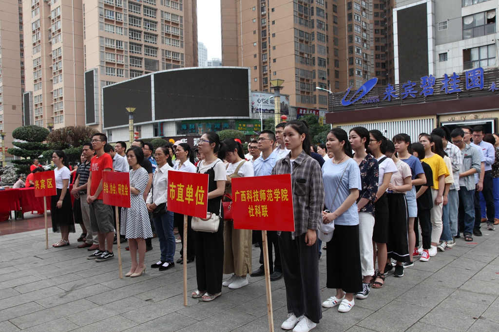 5月13日上午,主題為“普及社科知識 建設(shè)壯美來賓”的2019年來賓市社會科學(xué)普及活動周啟動儀式在來賓市大洋購物廣場步行街順利舉行。本次活動由來賓市人民政府主辦,來賓市社科聯(lián)、廣西科技示范學(xué)院社科聯(lián)等相關(guān)單位聯(lián)合承辦。