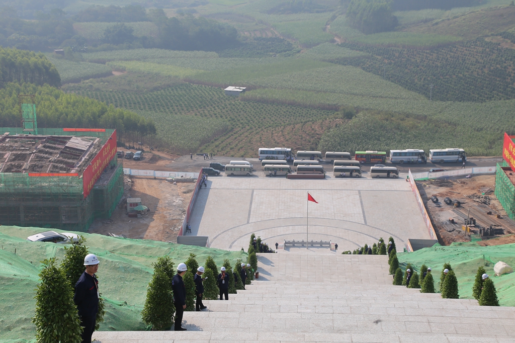來(lái)賓市烈士陵園項(xiàng)目位于來(lái)賓北站東北方向約7公里處,項(xiàng)目總建筑面積76106平方米(約114.2畝),整個(gè)工程由建筑、市政道路、景觀等部分組成,工程包括紀(jì)念碑廣場(chǎng)、大臺(tái)階(416步臺(tái)階)、集散廣場(chǎng)、業(yè)務(wù)綜合樓、革命英雄紀(jì)念館、革命文化展館等。烈士陵園設(shè)計(jì)布局以軸線對(duì)稱為鮮明特色,突出表現(xiàn)永垂不朽的崇高革命精神。