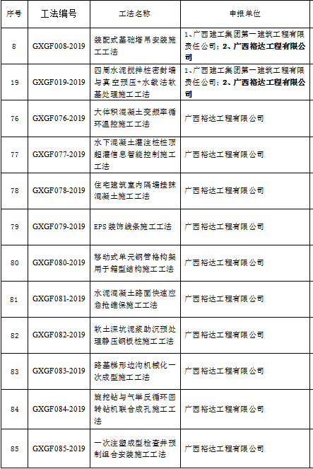 近日,從廣西建筑業(yè)聯(lián)合會發(fā)布的《關(guān)于公布2019年廣西壯族自治區(qū)級工程建設(shè)工法名單的通知》獲悉,工程公司申報(bào)的“大體積混凝土變頻率循環(huán)溫控施工工法”等10項(xiàng)自主研發(fā)工法以及“裝配式基礎(chǔ)塔吊安裝施工工法”等4項(xiàng)合作研發(fā)工法,被評為2019年廣西壯族自治區(qū)級工程建設(shè)工法。獲評數(shù)量超過歷年最高紀(jì)錄3倍,也使工程公司本年度的工法業(yè)績在原有基礎(chǔ)上獲得重大突破。