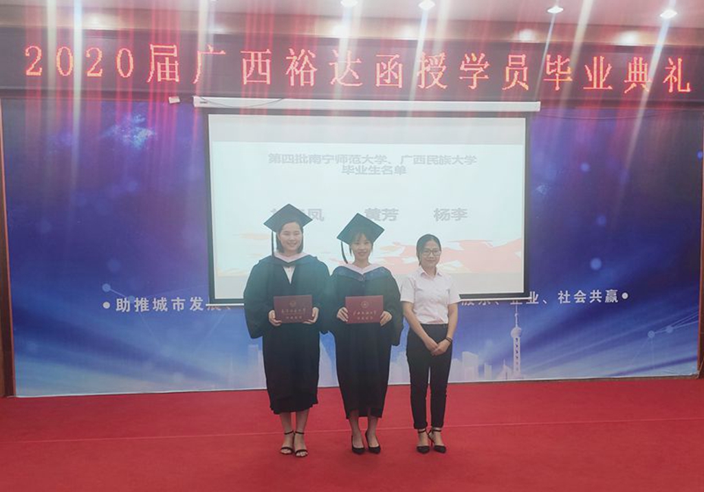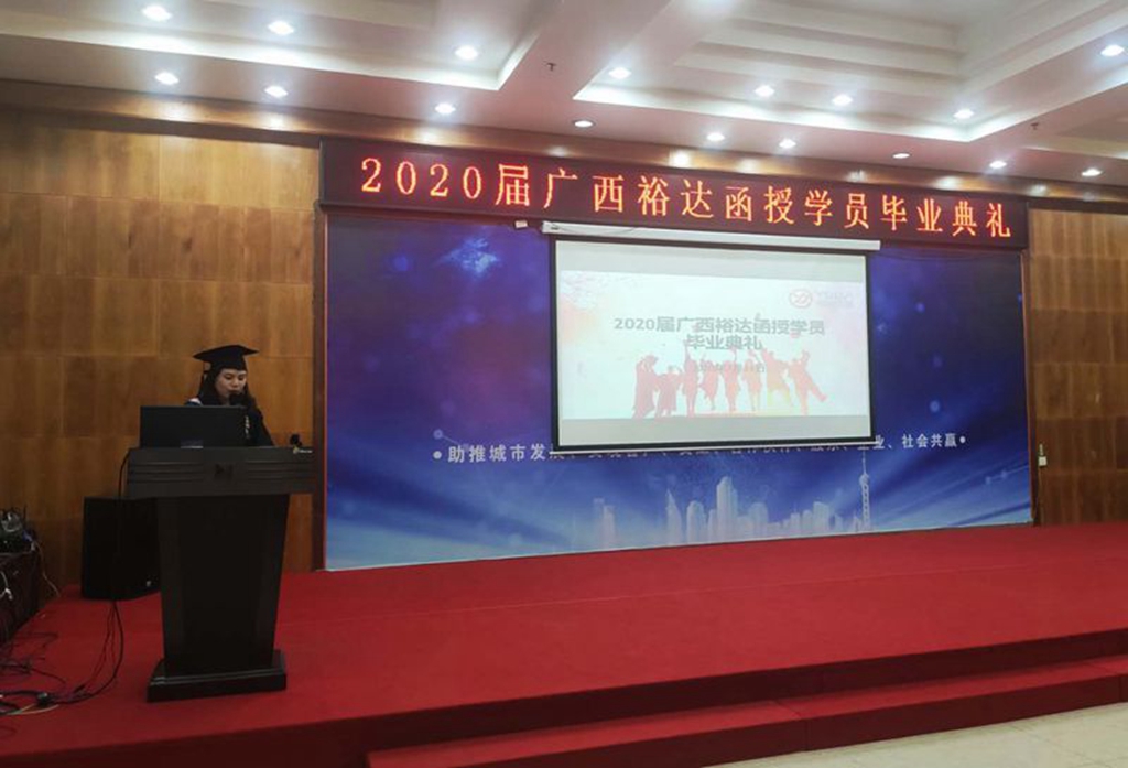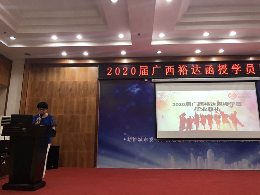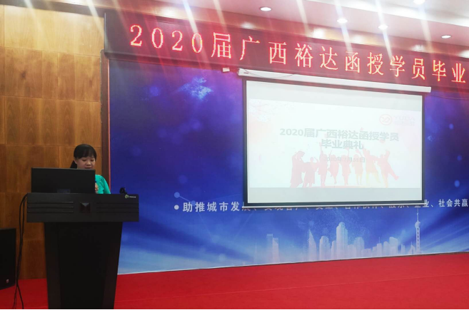 接著,廣西人才市場學習中心部長助理黃淑文老師發(fā)言,她對裕達函授站自2015年合作辦學至今取得的成績給予了充分肯定,同時期望畢業(yè)生學有所成,學有所用,不斷超越自己、在未來取得更加輝煌的成績。