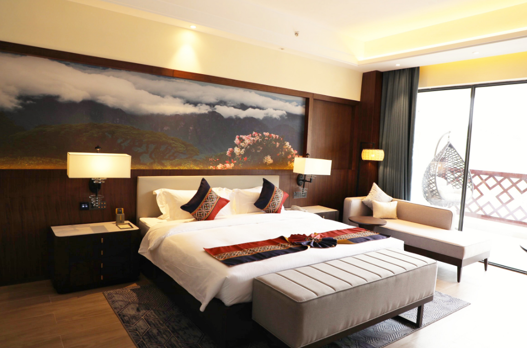廣西裕達(dá)旅游集團(tuán)作為廣西裕達(dá)控股集團(tuán)下屬子集團(tuán),目前正在經(jīng)營(yíng)的酒店有南寧裕達(dá)國(guó)際酒店、來(lái)賓裕達(dá)酒店、來(lái)賓飯店、武宣裕達(dá)酒店,金秀飯店作為裕達(dá)控股集團(tuán)投資興建的第五家酒店,是按照五星級(jí)標(biāo)準(zhǔn)建造,并融入了當(dāng)?shù)噩幾逄厣?,是一家集酒店住宿、餐飲、休閑商務(wù)、康養(yǎng)娛樂(lè)于一體的商務(wù)度假式酒店。酒店占地面積14萬(wàn)平方米,共計(jì)擁有720間瑤族主題客房、6間不同規(guī)格的多功能廳及宴會(huì)廳、1間瑤族特色主題餐廳等,集體驗(yàn)性與舒適性于一體,能夠滿足商務(wù)、會(huì)議、旅游、宴會(huì)等商業(yè)需求。