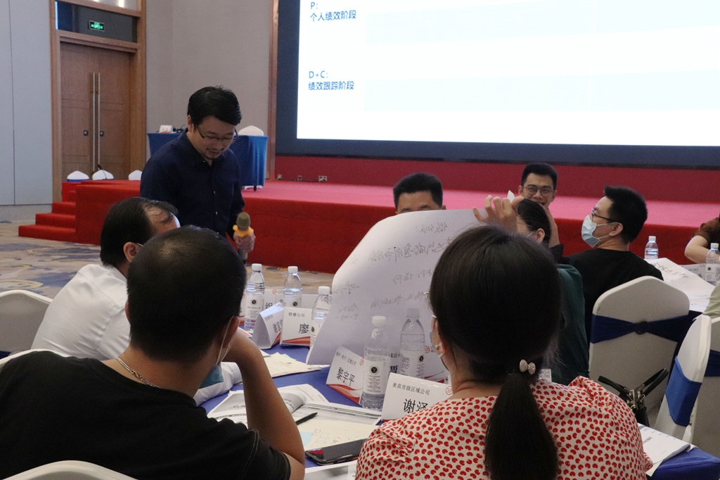 培訓期間,何老師首先講解了管理者的績效管理意識,明確績效管理的本質(zhì),強調(diào)績效管理是需要全員參與的管理工具,只有認識統(tǒng)一了,才能確??冃涞貙嵤┬Ч?。其次從關鍵指標設定進行深入分析和講解,指出目標設定重點是決定目標方向與權重,應將定量與定性、個人與團隊相結(jié)合。緊接著,通過運用不同績效輔導的案例引發(fā)學員深入思考,幫助學員掌握員工能力提升工具,制定團隊賦能計劃。最后,為大家詳細講解了績效反饋的雙向策略,并通過角色扮演的方式引導學員正確進行正反向績效反饋面談,從而達到改善員工行為、提升團隊績效的目的。