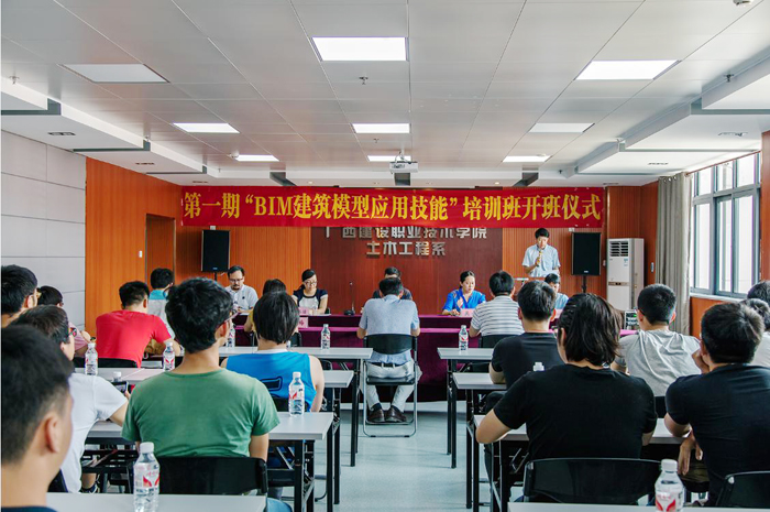 廣西建筑信息模型(BIM)技術發(fā)展聯(lián)盟首期“BIM建筑模型應用技能”培訓開班儀式暨廣西BIM聯(lián)盟工程實訓基地授牌儀式日前在廣西建設職業(yè)技術學院舉行。