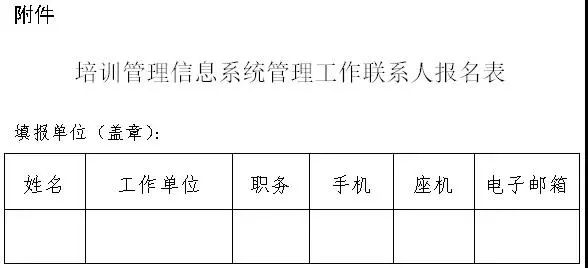 附件:培訓管理信息系統(tǒng)管理工作聯(lián)系人報名表