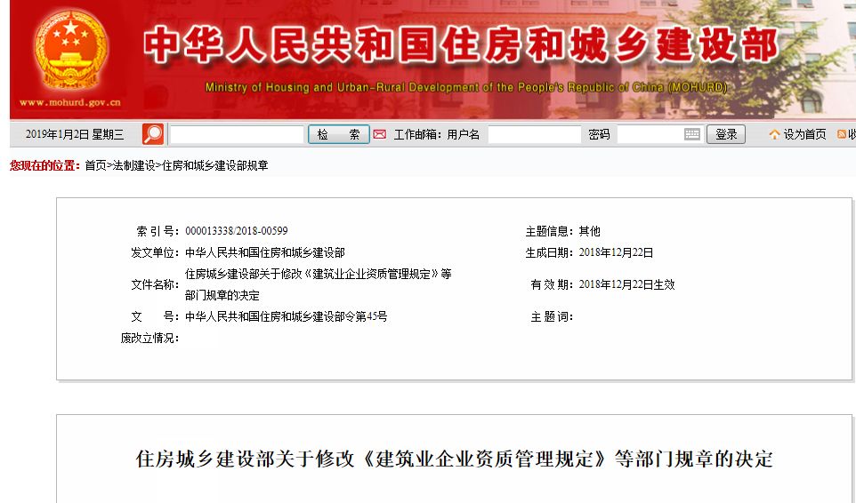 業(yè)內(nèi)人士認為,此次發(fā)布的修改事宜主要是為了與住建部于2018年9月發(fā)布的《住房城鄉(xiāng)建設(shè)部辦公廳關(guān)于建設(shè)工程企業(yè)資質(zhì)統(tǒng)一實行電子化申報和審批的通知》有關(guān)內(nèi)容保持一致。