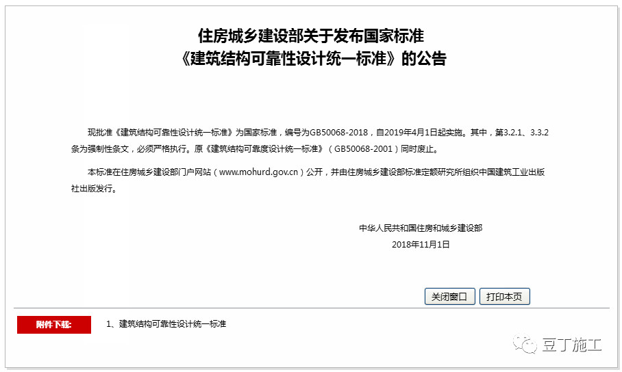 《建筑結(jié)構(gòu)可靠性設(shè)計統(tǒng)一標準》的公告