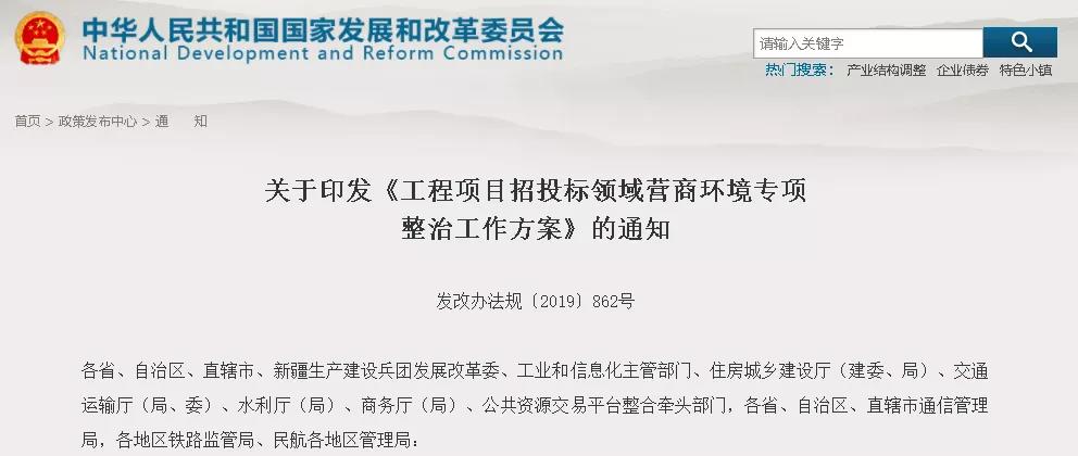 關于印發(fā)《工程項目招投標領域營商環(huán)境專項整治工作方案》的通知