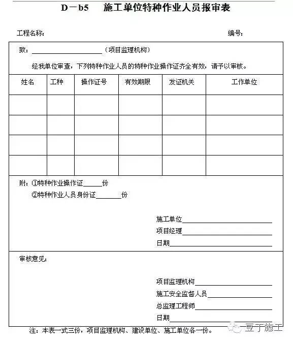 有特殊作業(yè)人員,需向項目部上報其工程相應(yīng)的合格有效的特殊工程作業(yè)人員操作證復(fù)印件(如:電工、電氣焊工、架子工、起重司索工、起重司機(jī)、起重機(jī)械安拆工、吊籃安拆工、場內(nèi)機(jī)動車駕駛員、樁工等)。
