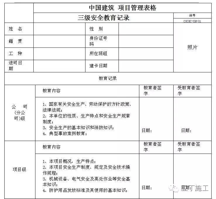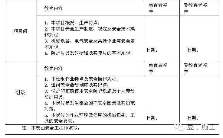 6、執(zhí)行入場教育、現(xiàn)場教育、崗位教育等三級教育。