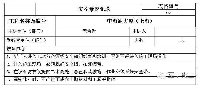 1、各項安全技術(shù)交底內(nèi)容必須記錄在統(tǒng)一印制的表式上,寫清交底的工程部位和工種及交底時間,交底人和被交底人必須簽名。
