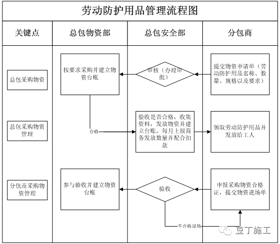 1、總包采購勞動防護(hù)用品:安全帽、安全鞋、工作服、反光背心。以上由分包商申請,總包統(tǒng)一采購發(fā)放,費用從工程款中扣除。