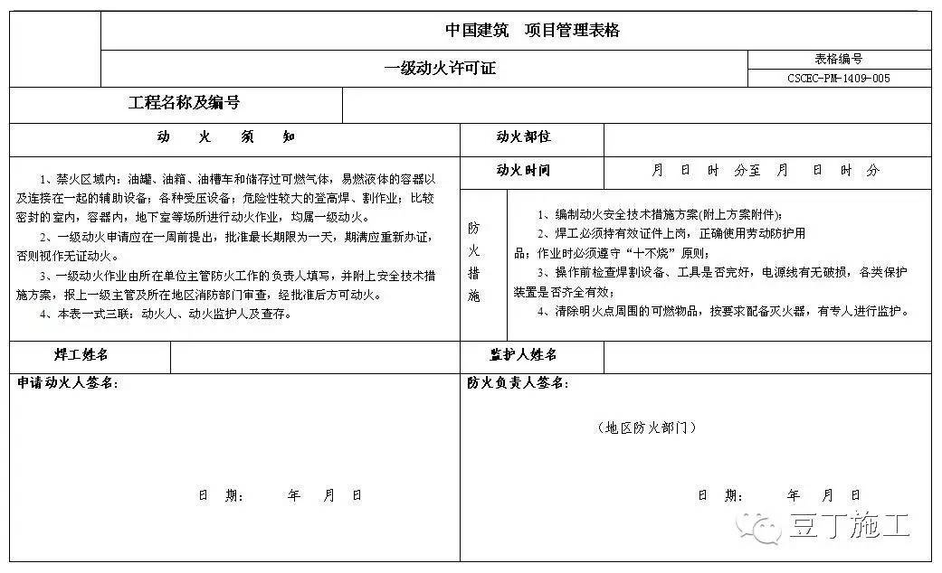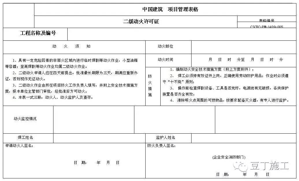 3)三級動火作業(yè)由所在班組填寫,經(jīng)本單位項目部施工負(fù)責(zé)人審查批準(zhǔn),方可動火。