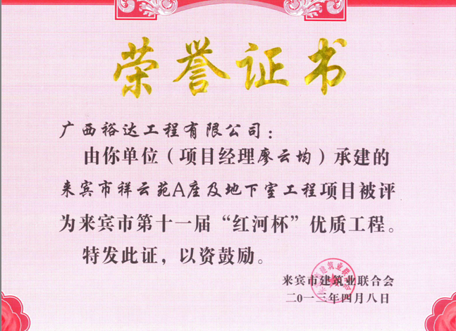 上一篇:2013年來賓市第十一屆“紅河杯”優(yōu)質(zhì)工程