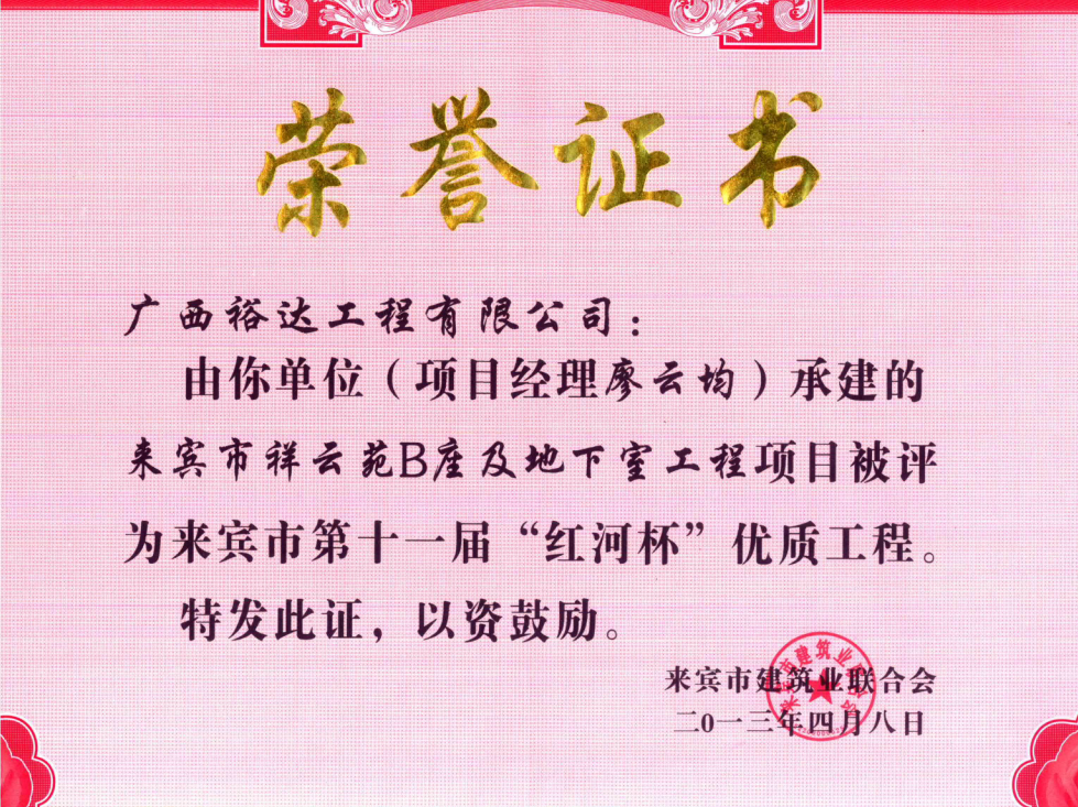 上一篇:2013年來賓市第十一屆“紅河杯”優(yōu)質(zhì)工程