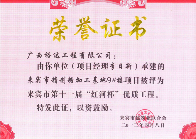2013年來賓市第十一屆“紅河杯”優(yōu)質(zhì)工程