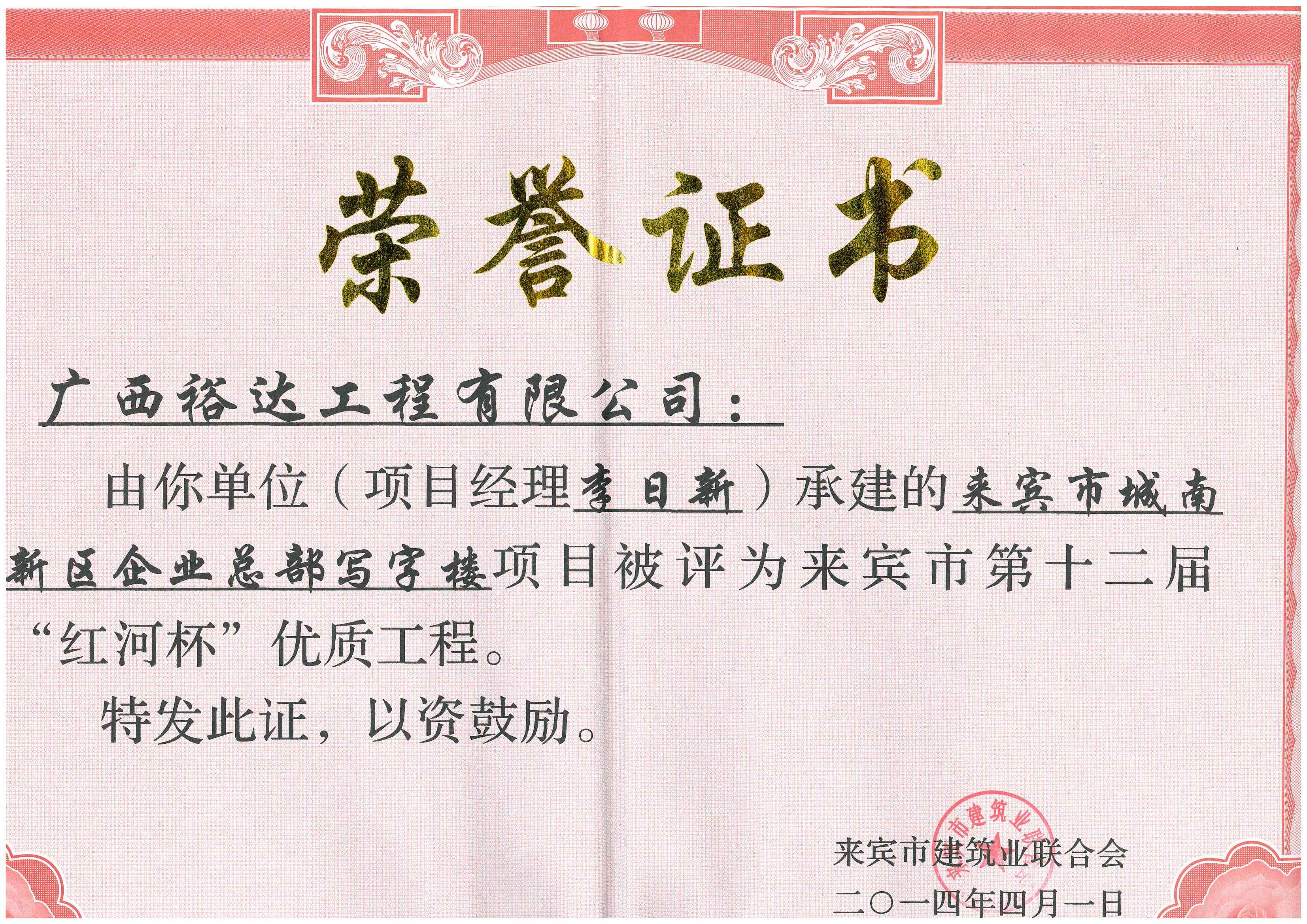 2014年第十二屆“紅河杯”優(yōu)質(zhì)工程