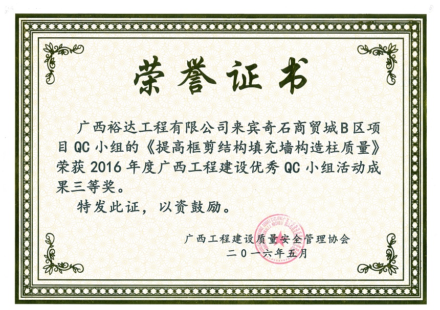 上一篇:2016年度廣西工程建設優(yōu)秀QC小組活動成果三等獎《提高外墻涂料施工合格率》-官塘小苑項目