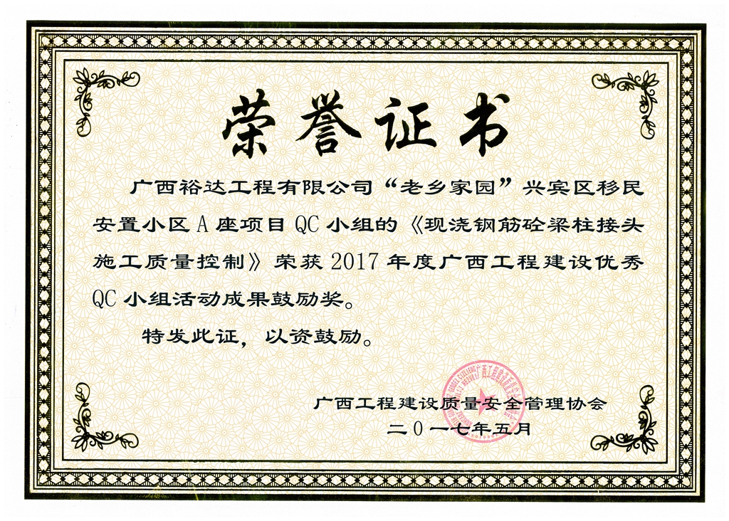 下一篇:2017年廣西工程建設(shè)優(yōu)秀QC小組活動(dòng)成果三等獎(jiǎng)
