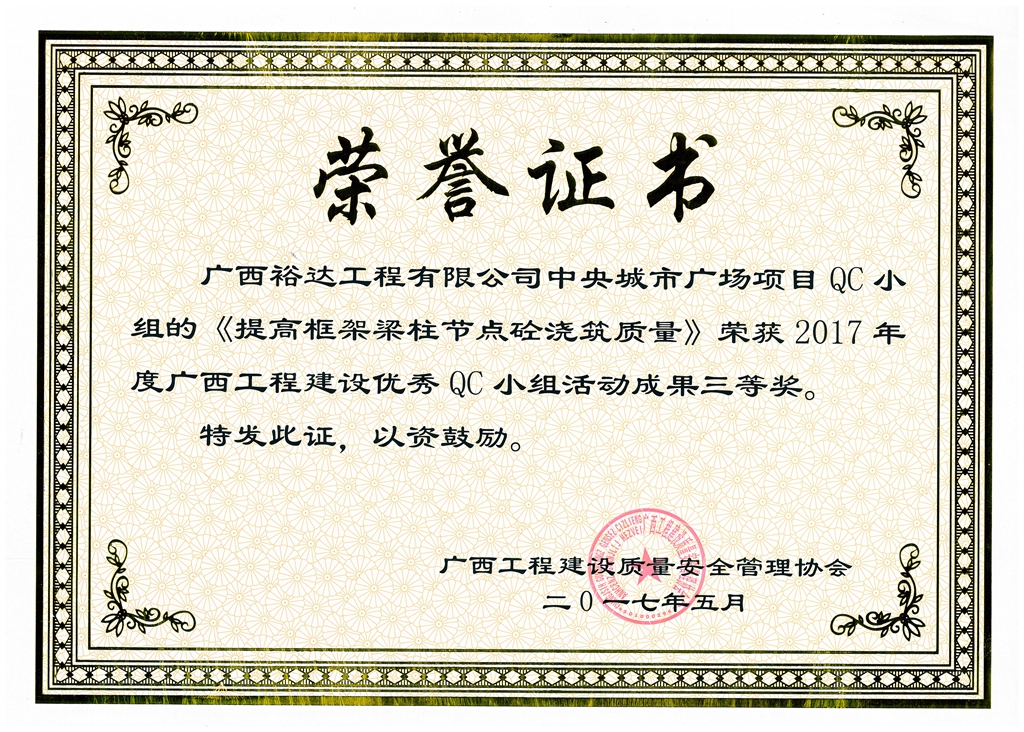 下一篇:2017年廣西工程建設(shè)優(yōu)秀QC小組活動成果三等獎