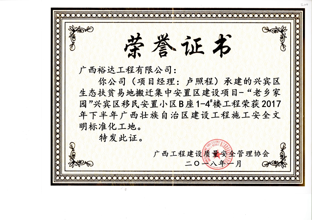2017年下半年廣西壯族自治區(qū)建設(shè)工程施工安全文明標準化工地
