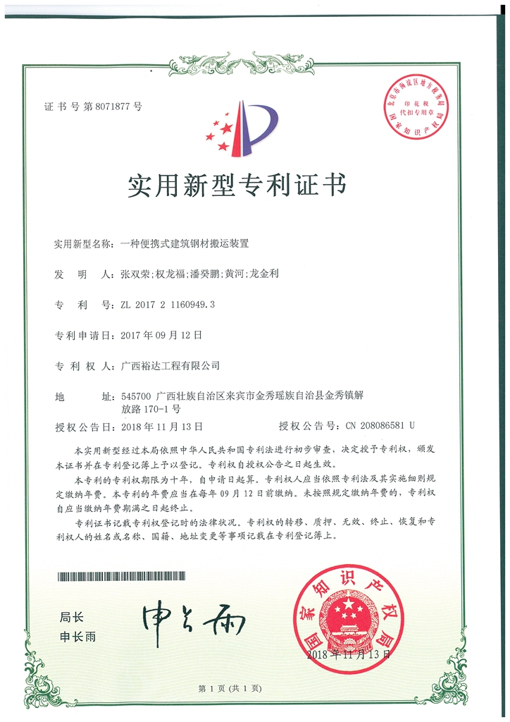 上一篇:2018年實(shí)用新型專利證書(一種園林種植用挖坑裝置)