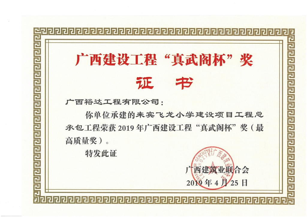 下一篇:來賓城南初級中學工程榮獲2019年廣西建設工程“真武閣杯”獎(最高質量獎)